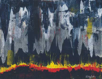 This is Hell and you are Dante but Virgil is stuck in a basket halfway up a wall in Limbo and texting some broad named Lucretia. Or this is Vietnam 1972, June 8 to be exact, a village called Trang Bang and you are nine years old and the VNAF has just dropped napalm and you run, naked, blistered, down the road, the GI Joes strolling casually behind you, one of them winding his camera. Or it’s August 1965, Watts, California, and you’re twelve and Black and choking on smoke, clenching fists in the street, watching the mosque where you and your family go for Friday prayer burn down after the cops tear-gas the sewers so no one else can escape. Or it’s that nightmare you had again last night, the one where you’ve just dropped a cigarette into the gas grill on Labor Day and the only way out is—well, there isn’t one, and again your daughter dies. Or some screwed- up EKG of your life in all its raging, jagged-shadowed, sky-reflected futility, a cave of burnt-to-a-crisp stalactite and stalagmite dreams and hopes gone up in smoke in which you’re trapped beneath that never-ending volcano in Hawaii, entombed with all the hate of the world erupting from you like that creature in the movie Alien, only you don’t die, you can’t, for you are the last of the firemen and your name is Virgil and from that hole in your chest a beacon cuts through the haze and you smash the phone against the wall and bail out of the basket of the apathy of your life and reach for a garden hose and run, run like hell, into the fire. Skyler LovelaceIssue 11, Spring 2019